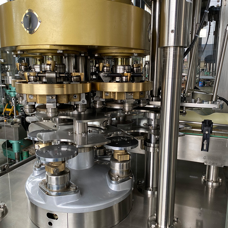 本機(jī)裝置有自動供罐機(jī)構(gòu),及一個“無罐一無蓋”聯(lián)動機(jī)構(gòu),和一個同步的分蓋機(jī)構(gòu),當(dāng)本機(jī)與灌醬(汁)機(jī)聯(lián)機(jī)使用時,本機(jī)還有一套驅(qū)動灌醬(汁)機(jī)的驅(qū)動系統(tǒng)。本機(jī)生產(chǎn)率高,對封醬,汁及蔬菜類罐頭尤為適用。