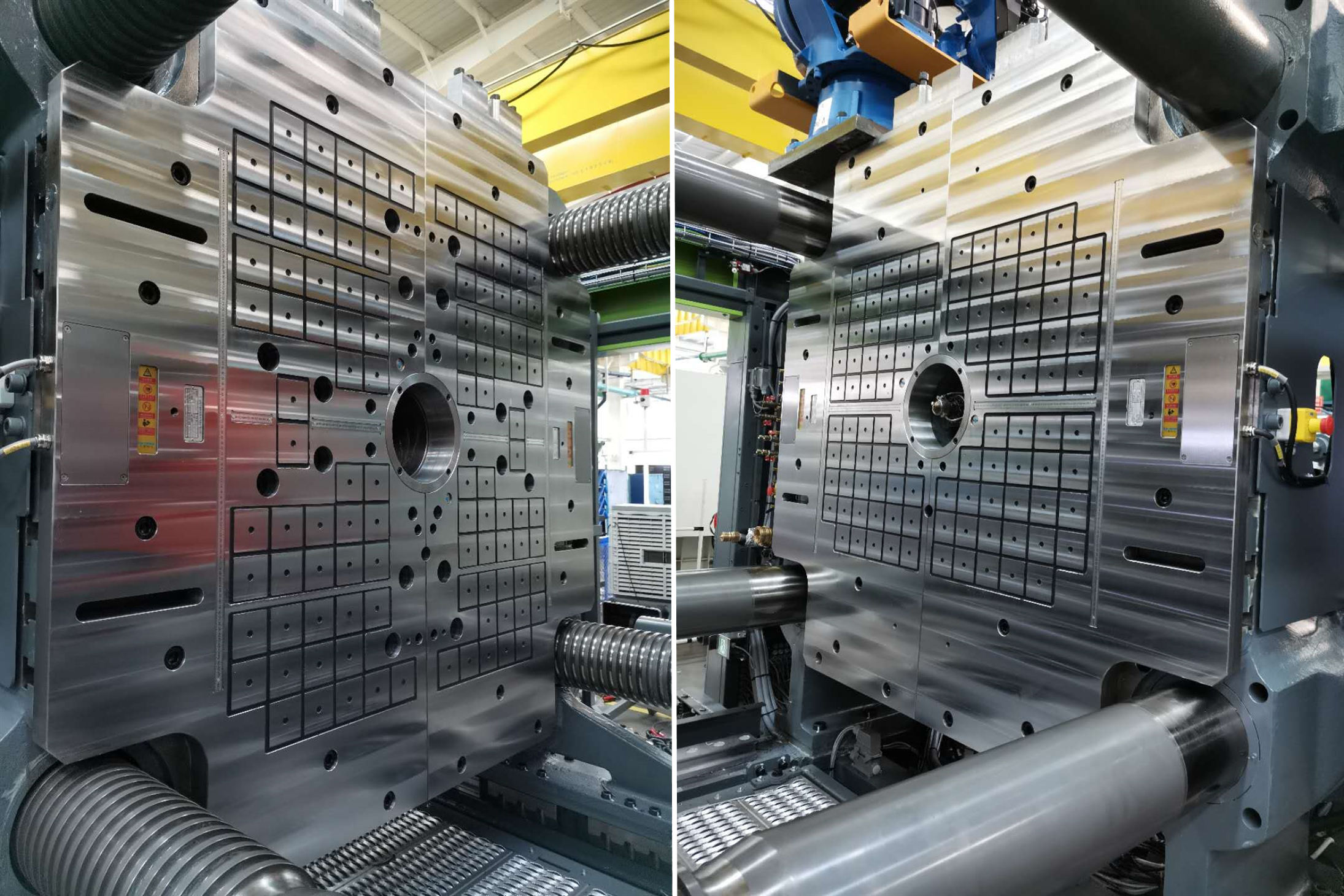 湖南千豪生產(chǎn)研發(fā)的磁力模板應(yīng)用在海天注塑機(jī)上,適用于3000噸注塑機(jī)換模。磁力模板是用在注塑成型機(jī)械上用來(lái)固定模具的。